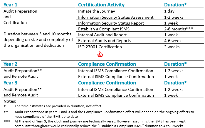 ISO 27001 Compliance is effectively a 3-year cycle following the certification.