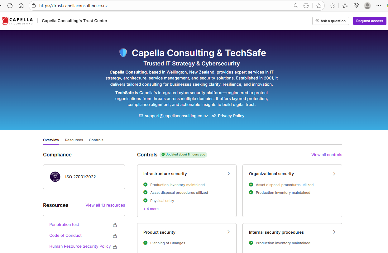 Capella Consulting’s security position can be viewed at Trust Center – Capella Consulting